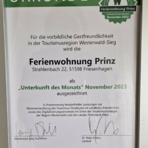 Die Wohnung liegt zentral in Friesenhagen. Sehr ruhig mit großen Garten, komplett eingezäunt, der mitbenutzt werden kann. Busverbindungen sind jede Stunde Richtung Morsbach oder Freudenberg. Friesenhagen ist der nördlichste Teil von Rheinland Pfalz und liegt im schönen Wildenburger Land. Wanderwege und Radwege starten direkt vor Ort. Sehenswürdigkeiten sind u.a das Wasserschloss Krottorf, die Wildenburg, das Siegerland mit der historischen Altstadt von Freudenberg, der Biggesee, Westerwald und das Sauerland liegen nicht weit entfernt.